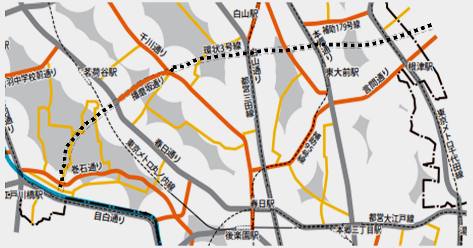 「文京区都市マスタープラン2011」から転載(点線が環状3号線計画…編集部で加筆)