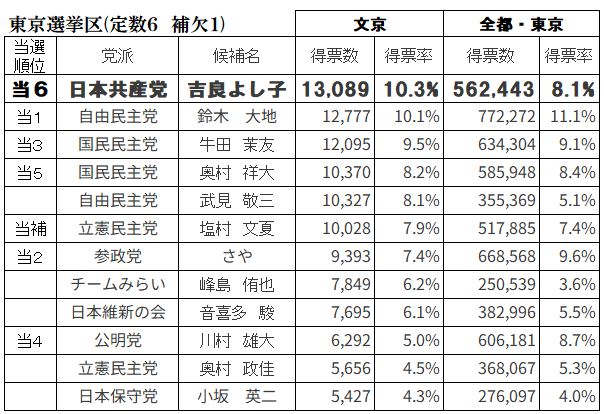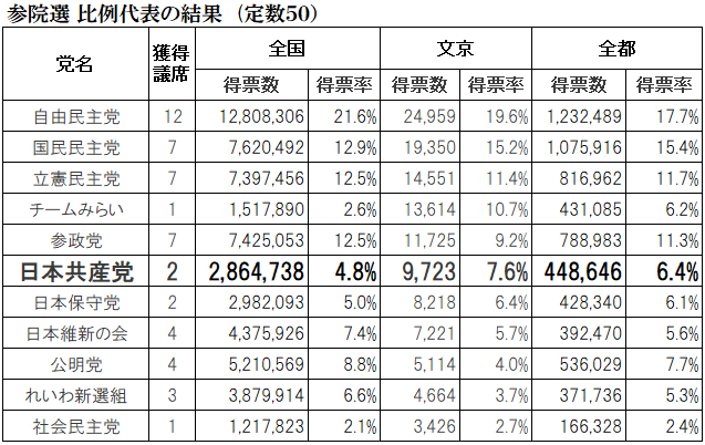 7月20日に投開票された参院選で日本共産党は比例で286万票・2議席(小池晃・白川容子)と東京選挙区・吉良よし子参議院議員の計3議席の獲得に留まりました。この結果は大変悔しく残念な結果でありご期待に応える結果を出せなかったことについてお詫び申し上げると共に、党内外のご意見を受け止め次の国政選挙でのたたかいに必ず生かす決意です。