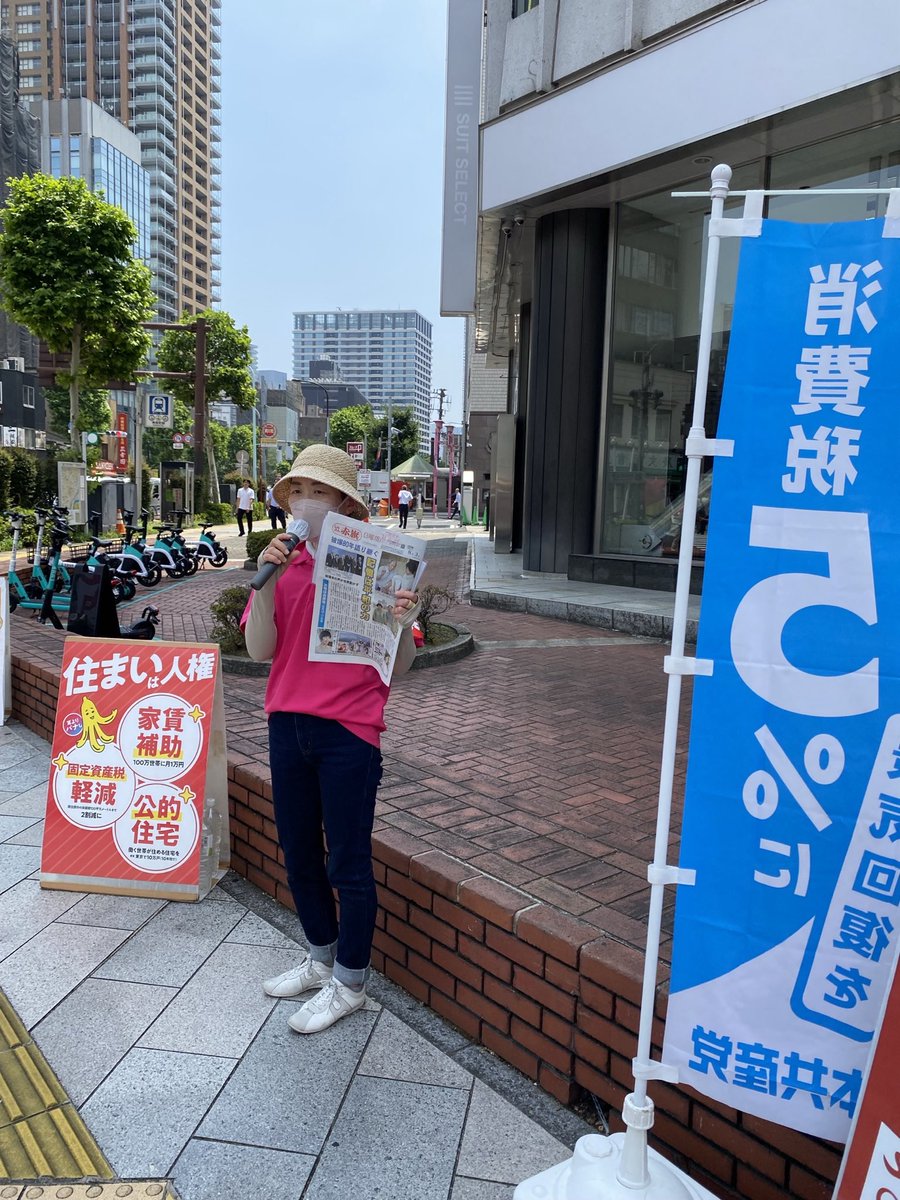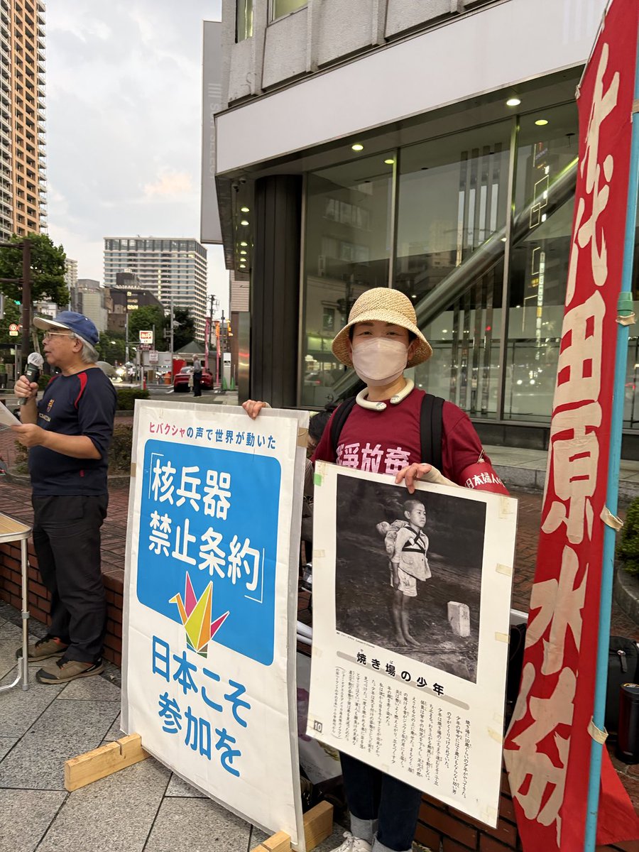 神保町交差点にて、昼は定例宣伝で「くらし応援には、消費税減税を」と。夕方には、千代田原水協の6・9行動宣伝に参加。核兵器禁止条約への批准を求める署名をしてくれた人が皆さん「暑い中、ありがとう」と。実現まで続ける力をもらいました😊