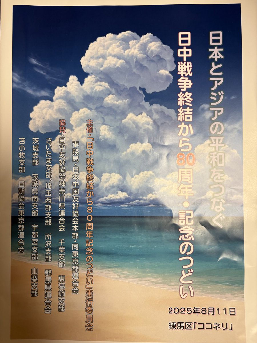日中戦争終結から80周年・記念のつどいに参加。第一部は小説家の島田雅彦さんの講演。「歴史のifをめぐって」。あの時if(もしも)こうしていたらはキリがない。まして、歴史修正などあってはならない。第二部の合唱や民族舞踊は素晴らしかった。変面の速さはお見事。