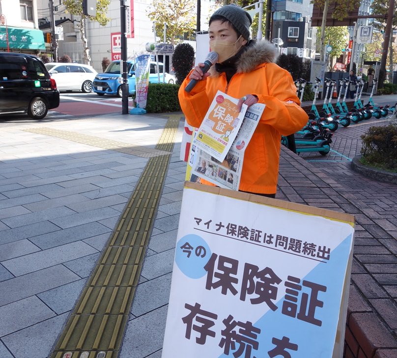 昨日の昼宣伝は #神保町交差点 で。マイナカードは作ったけど、保険証の紐づけは不安があるのでしていないと言う方、多いです。