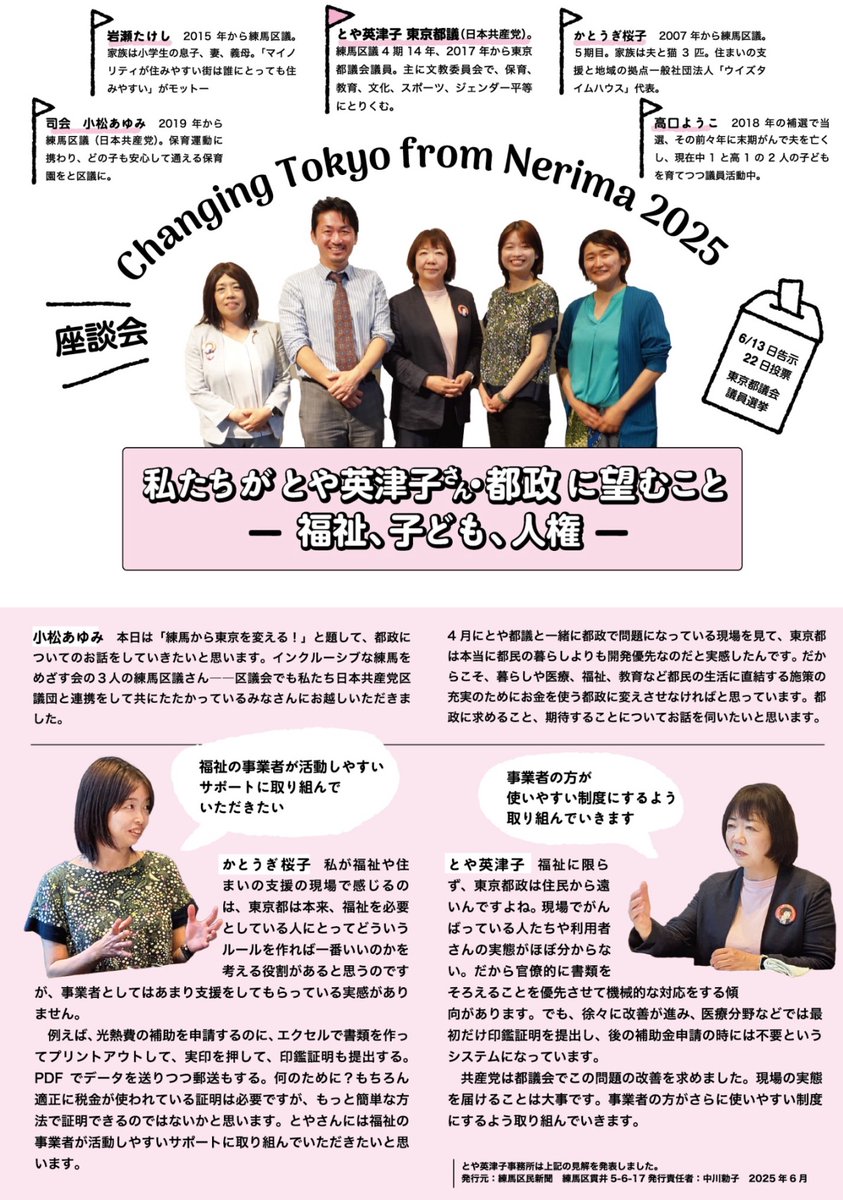 #練馬区 #都議選 #とや英津子 #かとうぎ桜子 #岩瀬たけし #高口ようこ