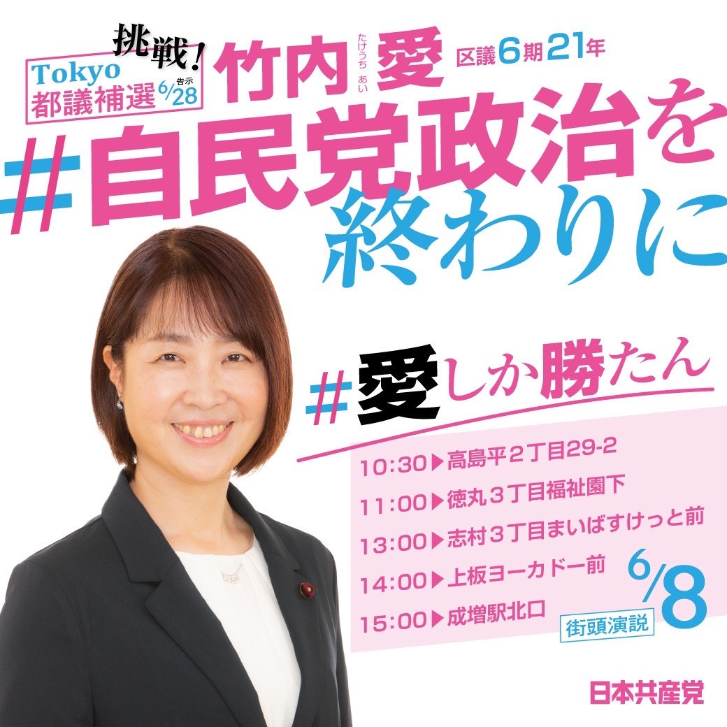 竹内愛さんは、7/7の都議補選に立候補します!!
