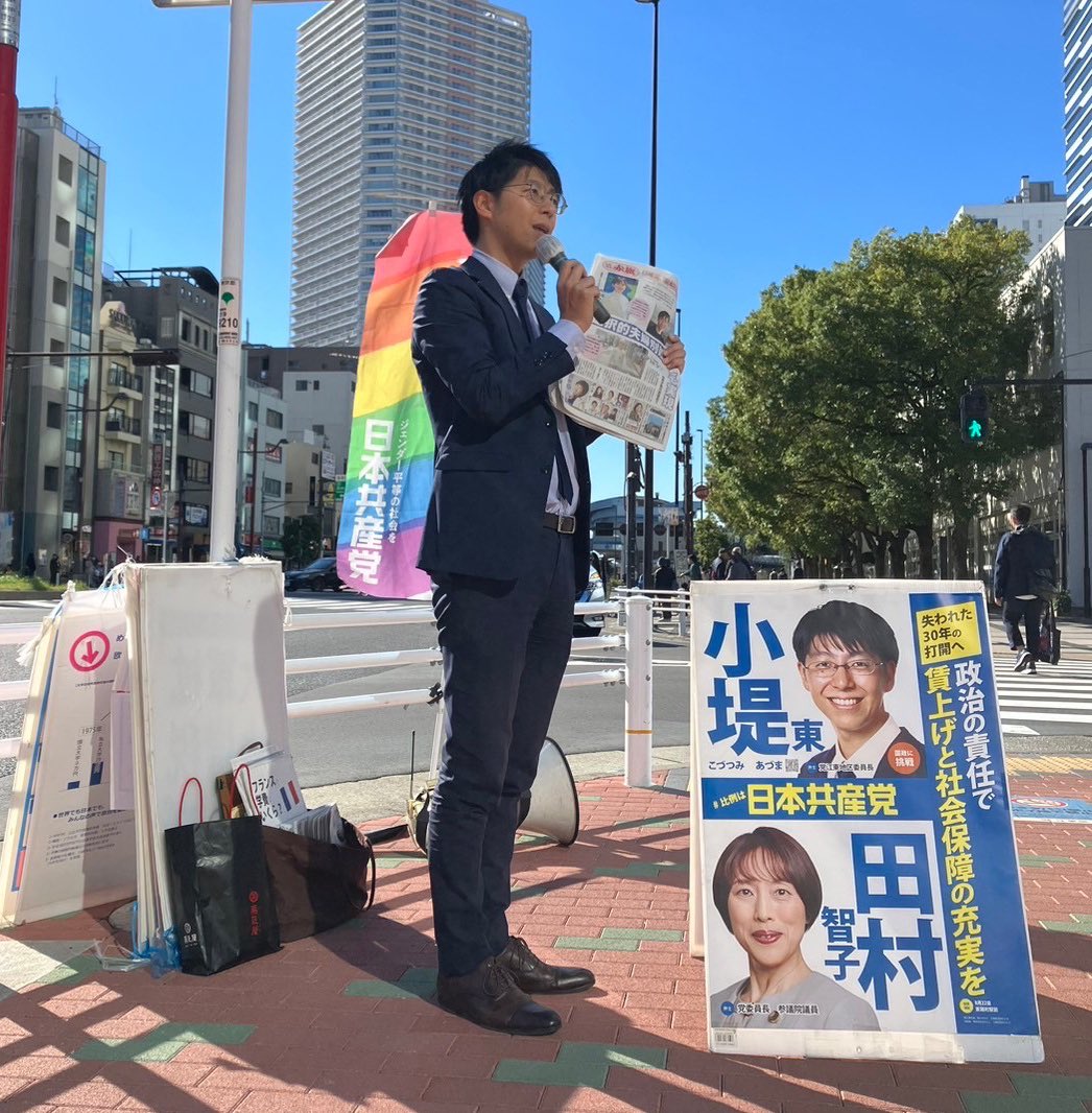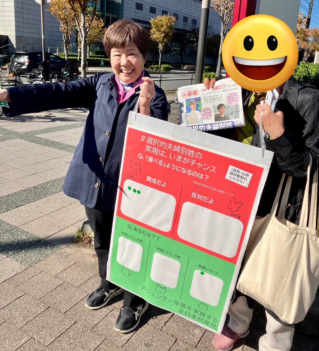 豊洲ビバホーム前では #選択的夫婦別姓 の実現に向けたシール対話宣伝をあぜ上三和子都議と青年・まんなか世代後援会の皆さんとともに。…