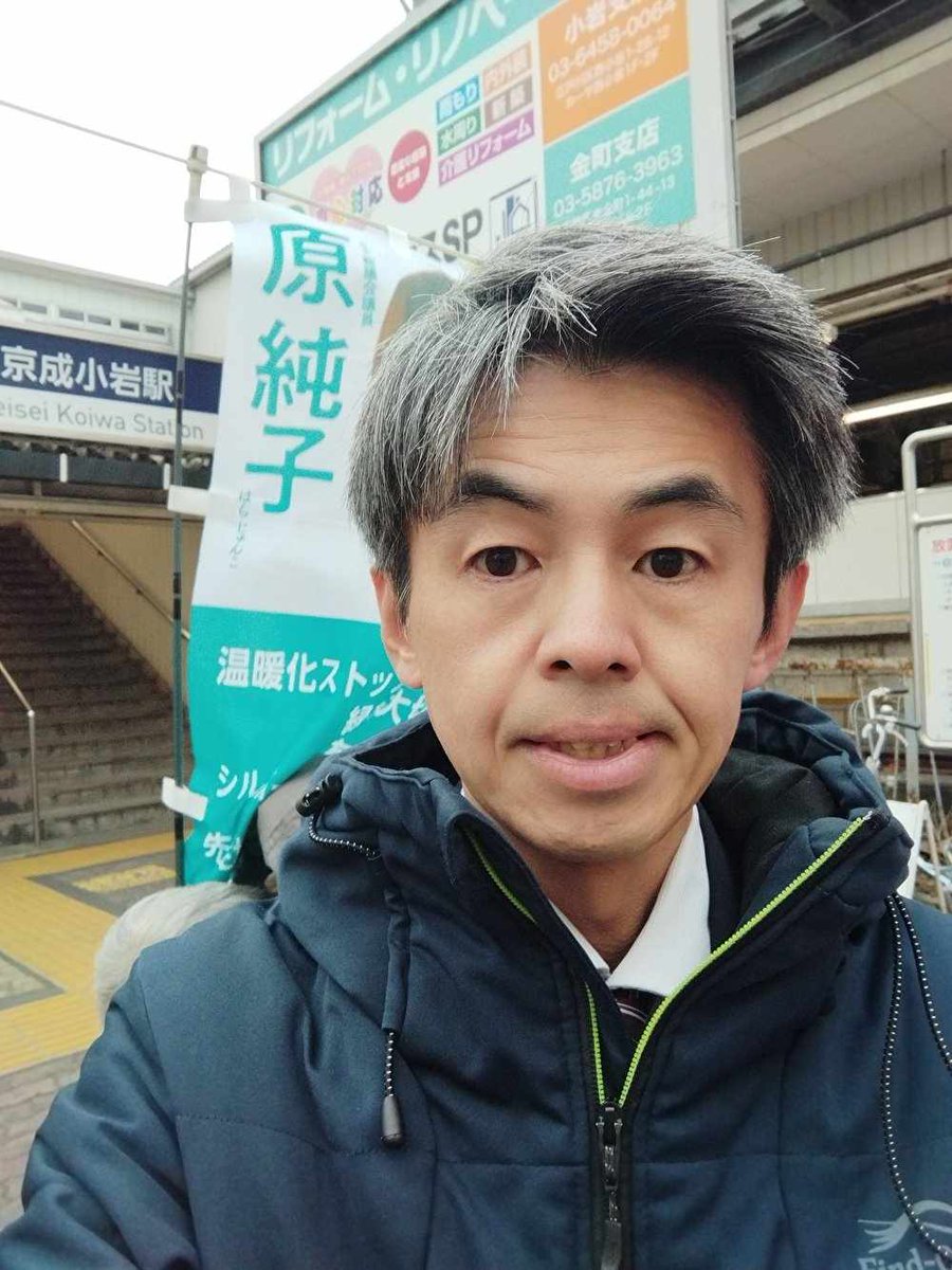 6日、新年最初の朝の駅頭活動は京成小岩駅。