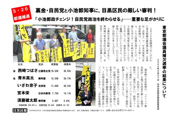 日本共産党目黒地区委員会は、#目黒都議補選 の結果について、声明を発表しました。