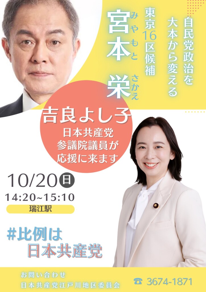 #2024#衆議院選#日本共産党#宮本栄 街頭演説 #牧野けんじ 応援演説 at 瑞江 2024.10.20 #小選挙区#東京16区 では、#宮本栄 さんを応援します。 #比例代表 では #日本共産党 をよろしくお願いし ...