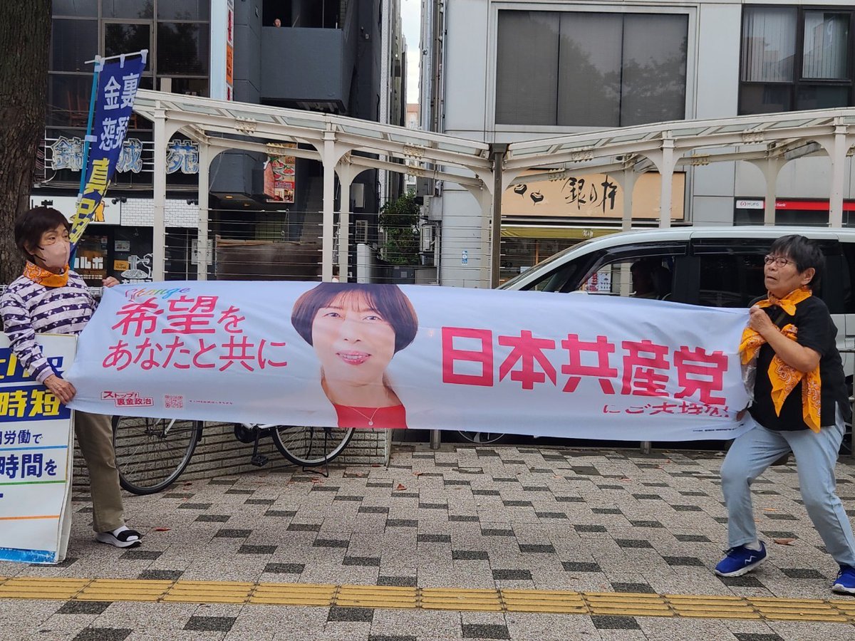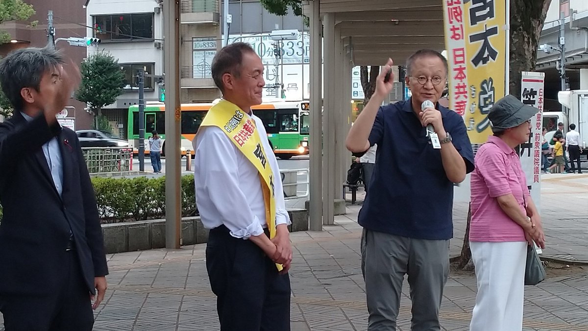 今日は、笠井亮前衆議院議員が、西葛西と船堀の2箇所、応援に駆けつけてくださいました。#比例は日本共産党 東京の現状はまだ前回獲得の二議席に届いていませんが、情勢は動きます。頑張れば、三議席、さらに議席増も可能です。あと、3人、5人、10人と支持を広げてください。メッセージ動画後ほど