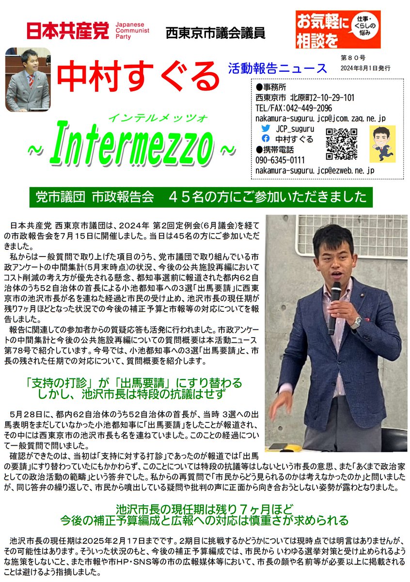 私の活動報告ニュース「~Intermezzo~インテルメッツォ」第80号を発行しました!