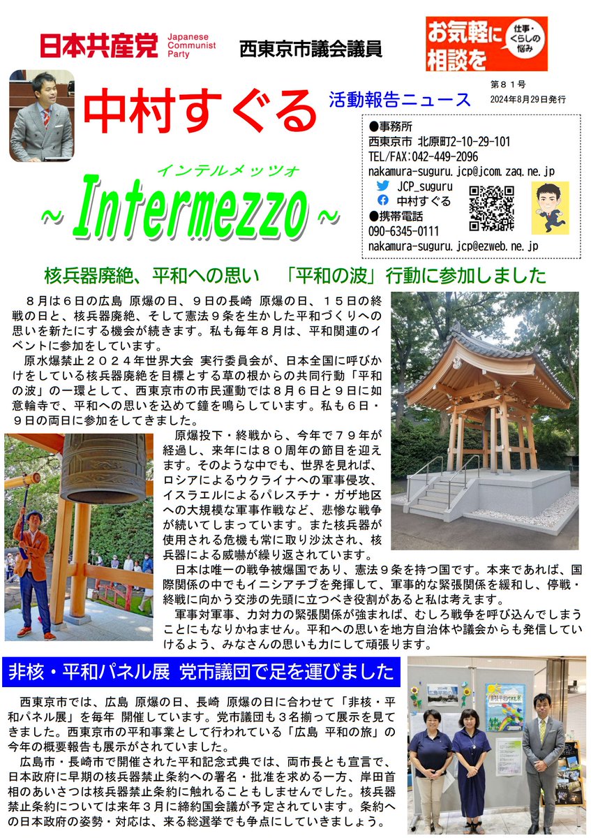 私の活動報告ニュース「~Intermezzo~インテルメッツォ」第81号を発行しました!