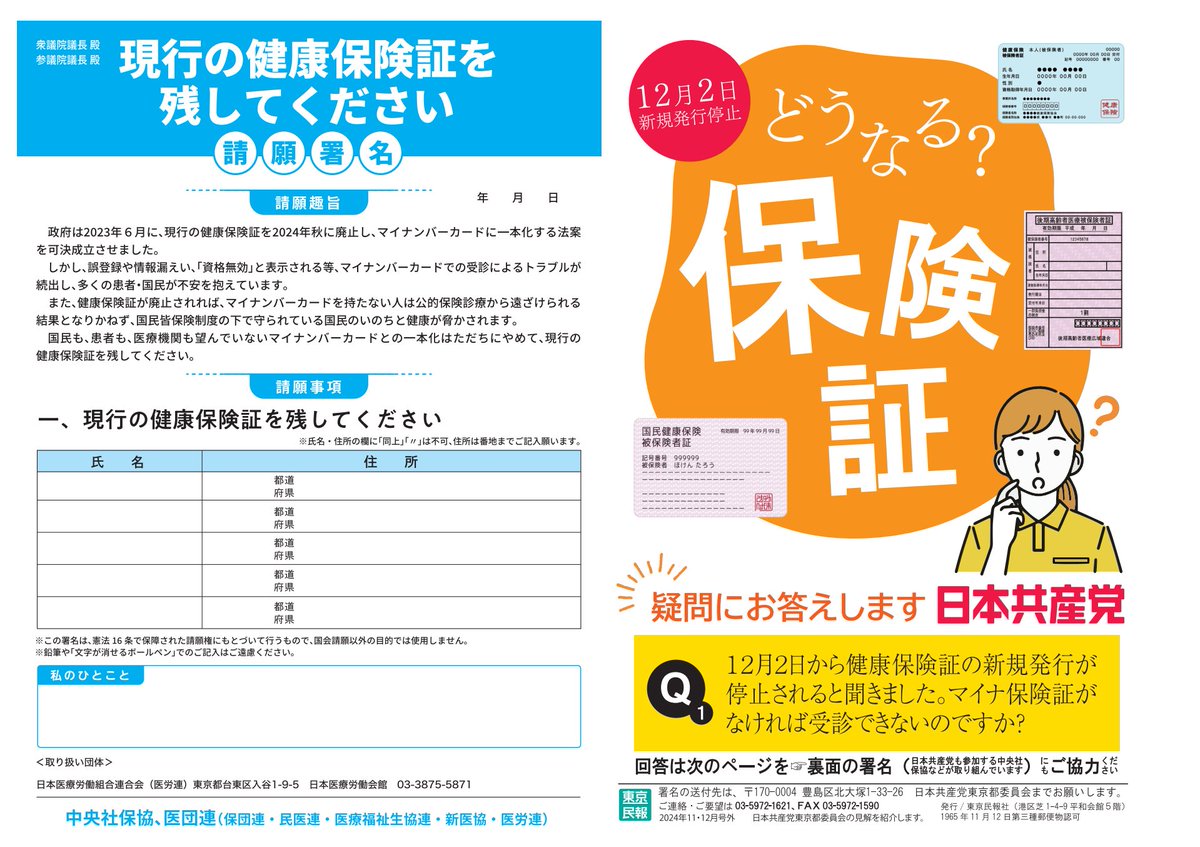 併せて、現行の保険証を存続させるための署名・運動にもぜひご協力ください。