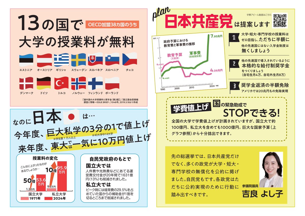 #日本共産党 は昨日11月27日に要請文「学費値上げを止めるための緊急の予算措置を求めます」を政府に申し入れました。