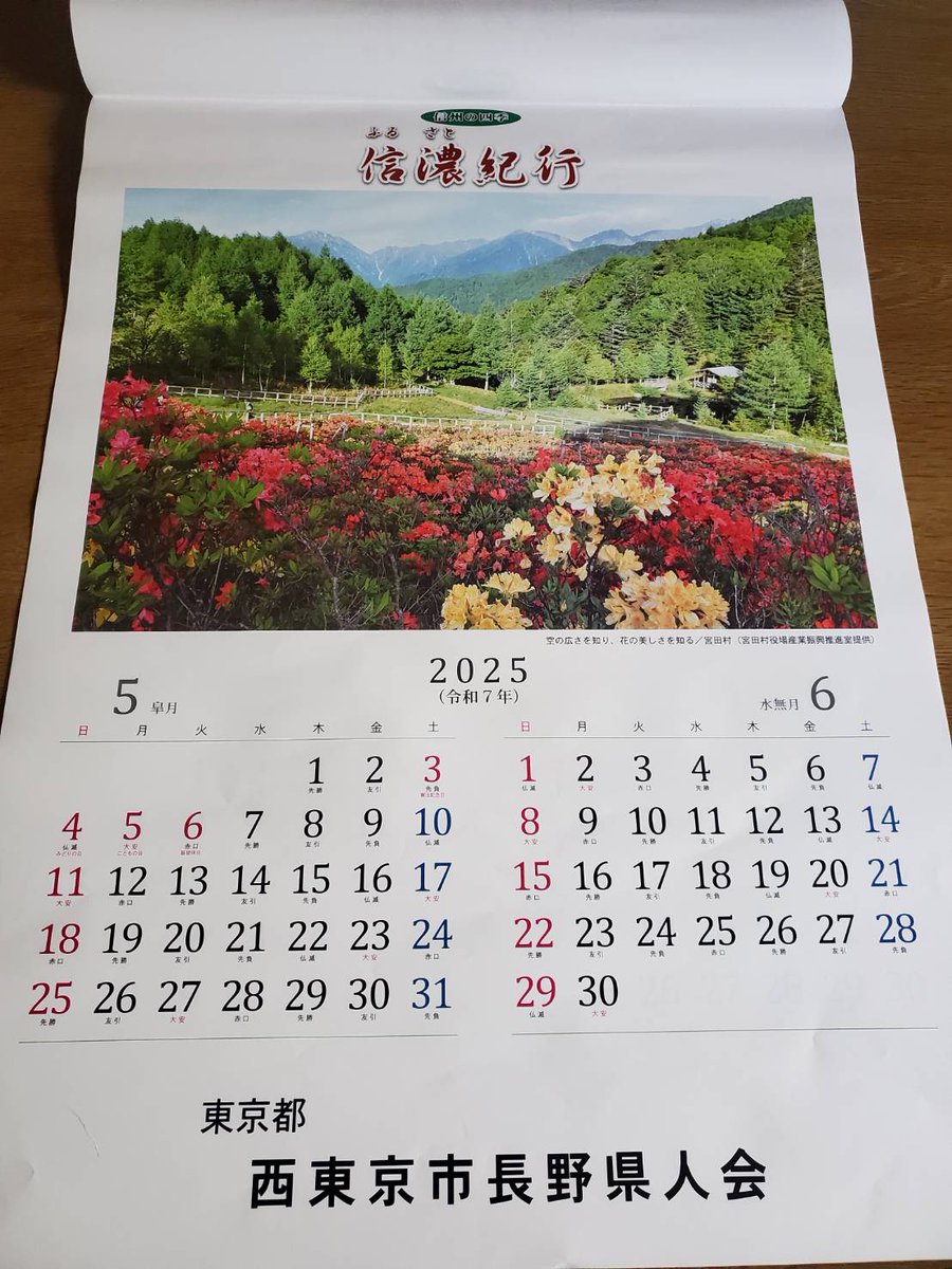 長野県人会から来年のカレンダーが届きました。このカレンダーを毎年 年末の楽しみにしています。
