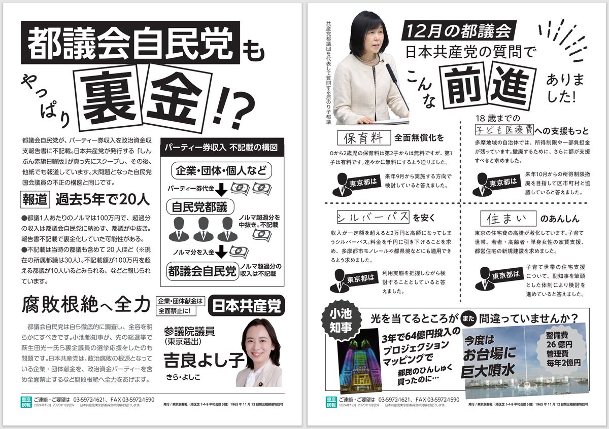 #日本共産党 東京都委員会のビラ(東京民報 号外)が発行されました。