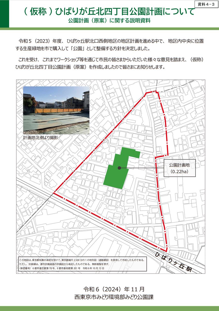 #西東京市 (仮称)ひばりが丘北四丁目公園について、都市計画公園の案の縦覧・意見書の提出が始まっています。縦覧期間・提出期間は1月22日(水)までです。