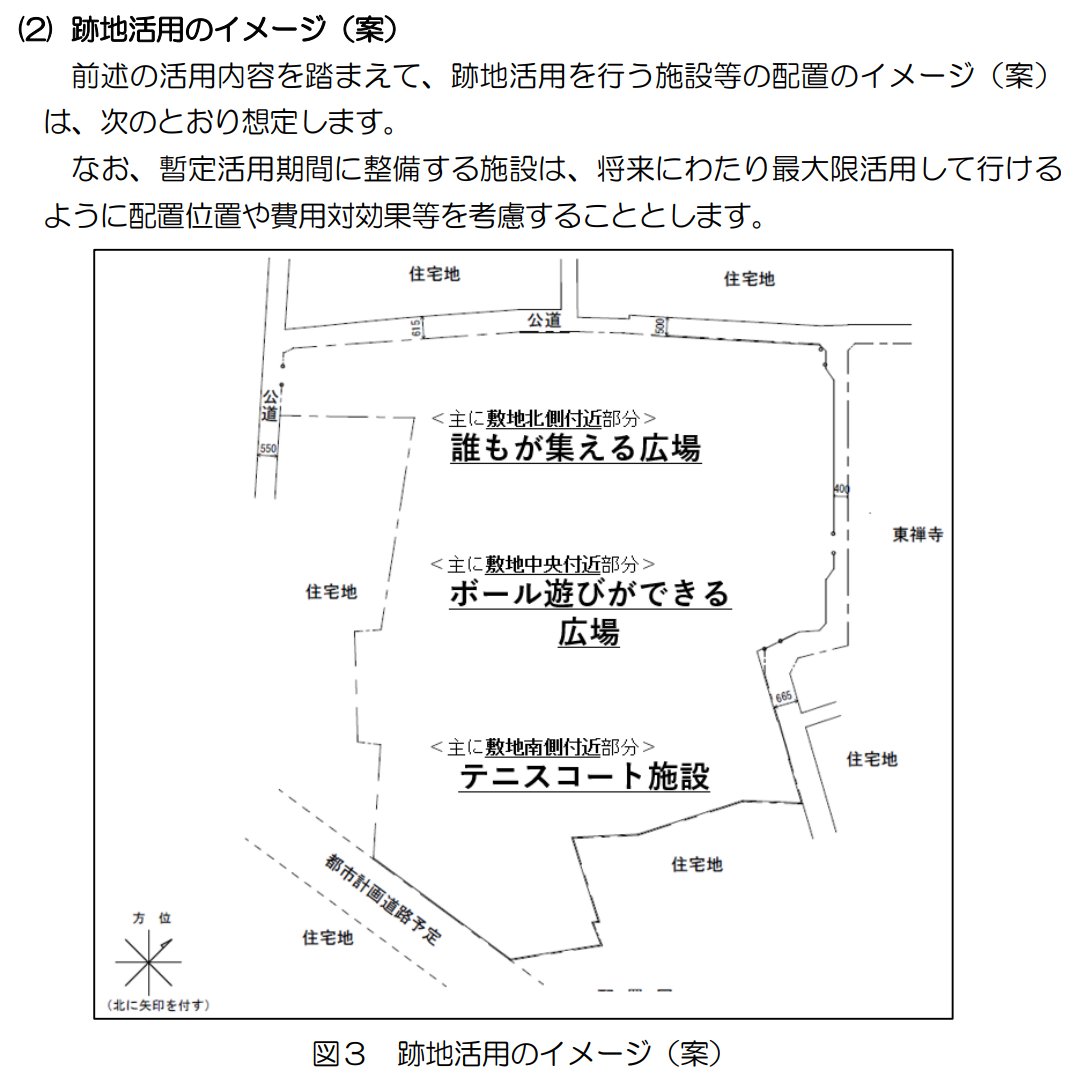 昨年11月に開催された意見交換会を経て、広場、ボール遊び、テニスコートがイメージ案となっています。引き続き、ご意見をお寄せください。