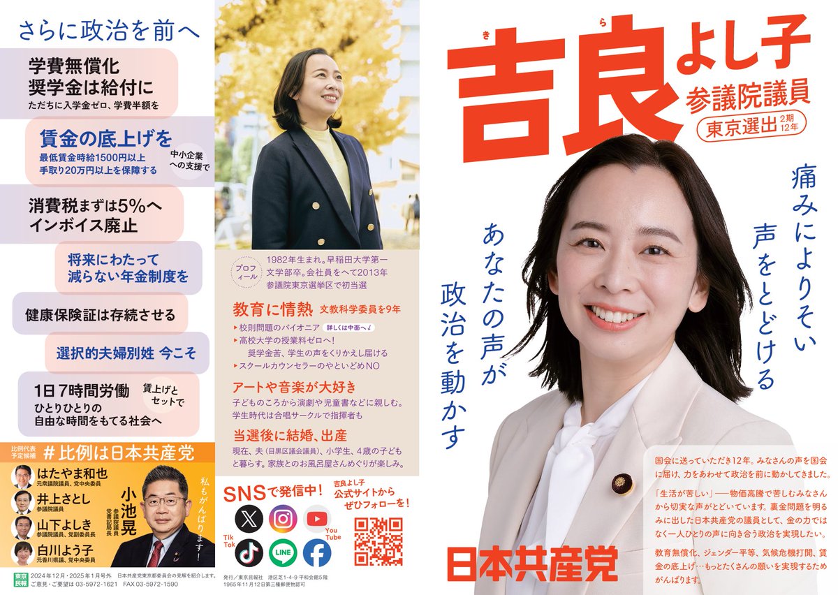 #日本共産党 #吉良よし子 参院議員の国会論戦・実績、政策等を紹介するリーフレット(東京民報 号外ビラ)です。