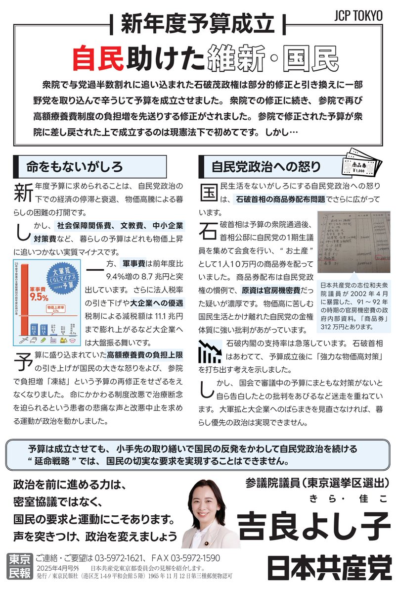 #日本共産党 東京都委員会のビラ(東京民報 号外)が発行されました。