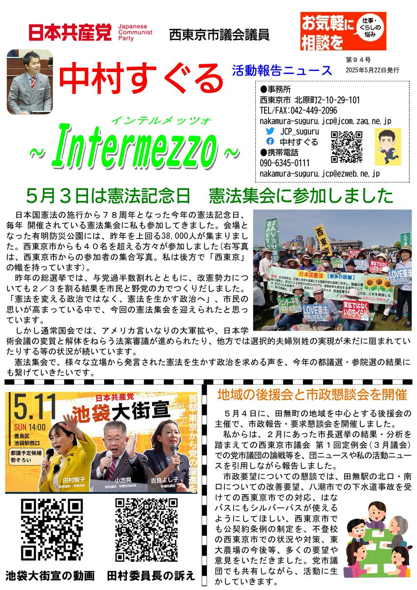 私の活動報告ニュース「~Intermezzo~インテルメッツォ」第94号を発行しました!