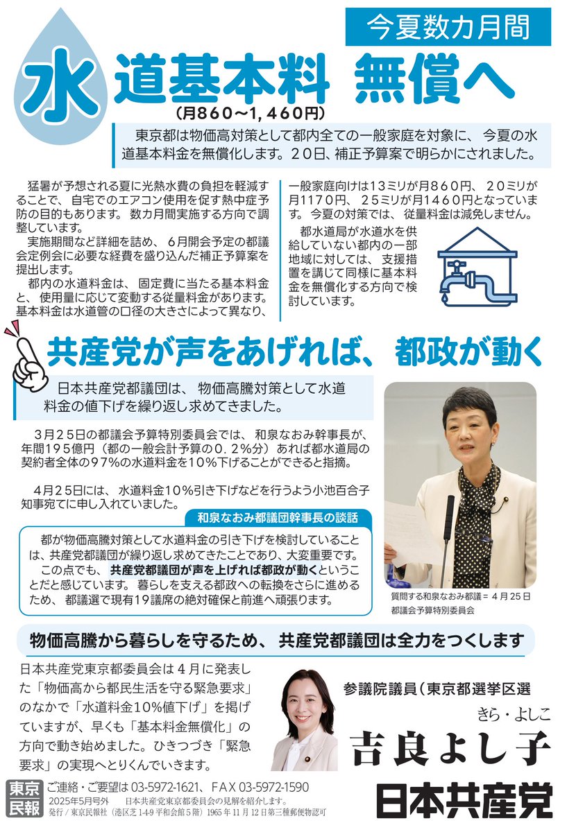 ●水道基本料無償へ 共産党が声をあげれば都政が動く