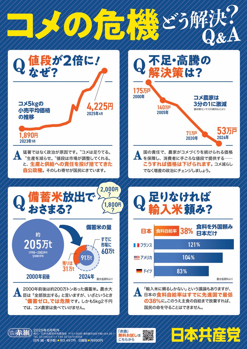 しんぶん #赤旗 6月号外が発行されました。連日のように報道されている米の問題について、 #日本共産党 の考え方や政策を紹介しています。来たる参院選でも大きな争点です。