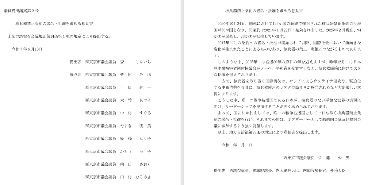最終日には「核兵器禁止条約の署名・批准を求める意見書」が上程されましたが、可否同数(13対13)で、議長採決により、残念ながら否決されました。