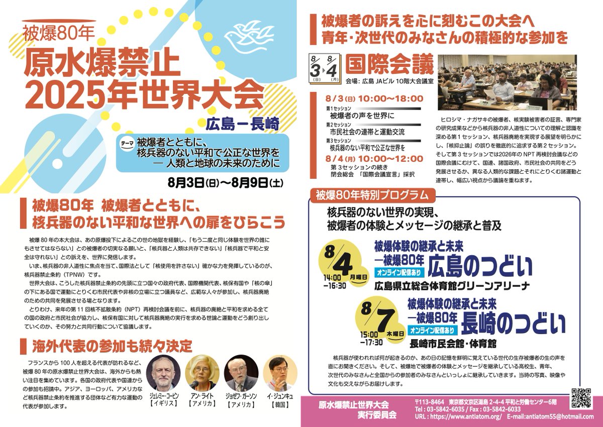 RT @AntiatomOrg: 被爆80年・原水爆禁止2025年世界大会のチラシです。
