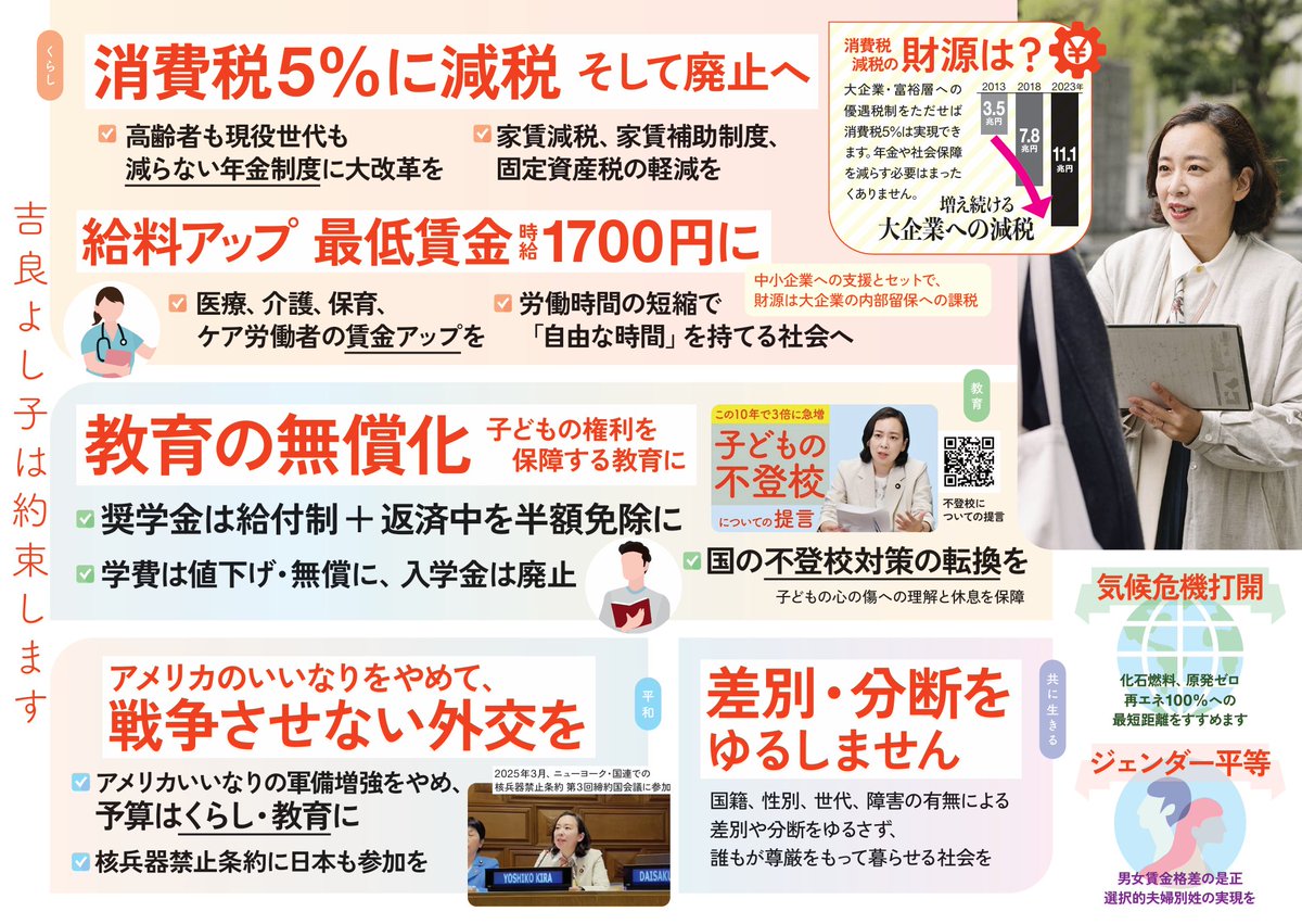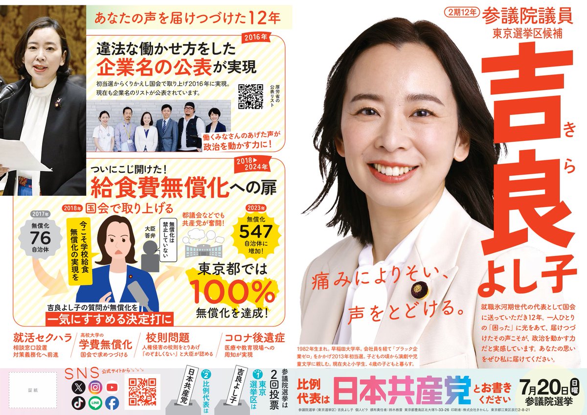 参院選 東京選挙区から3期目へと挑戦する #日本共産党 #吉良よし子 候補の個人ビラ(証紙ビラ)です。