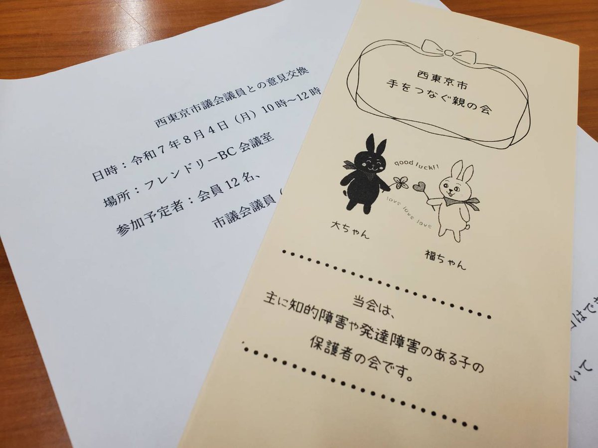 本日 8月4日は、西東京市 手をつなぐ親の会と市議会議員の意見交換会に参加しました。障がい者施策に係る西東京市での制度運用や対応の状況等、当事者の方々から率直な現場の実態とご意見をいただきました。