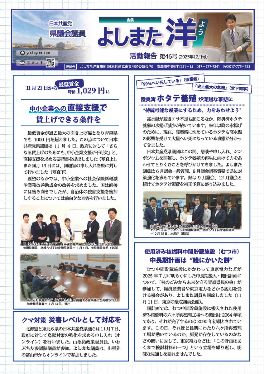 モノクロで印刷して、青森市内の「しんぶん赤旗」読者のみなさんにお届けします。