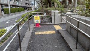 すでに工事が終わったファミリースポーツ広場の道路から公園に入るスロープが狭いという指摘があり見てきました。直角に曲がる角が円形になっておらず手すりが直角です。車いすを利用される方、使い勝手が悪ければ改善してもらいます。ご意見をお寄せください。また、駐輪場にほとんど自転車がありません。公園に乗り入れています。私は、公園は自転車乗り入れ禁止かと思ったら、そうではない表示があり、これも驚きです。ファミリースポーツ広場のまん中にスターバックスのカフェができたからでしょうか。