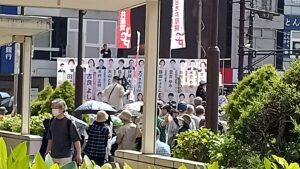 5月18日午後2時から、西葛西駅で街頭演説を行いました。原純子都議、吉良よし子参議院議員、小池あきら書記局長から、お話があり、多くの方に聞いていただきました。ユーチューブ動画でも見ることができます。大橋が、地元の区議として司会を務め、市民弁士も3人宣伝カーから訴えました。みなさんに応援してもらった街頭演説となりました。今からでも、ぜひご覧ください。