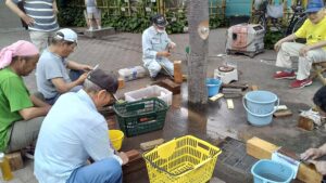 富士公園リニューアル工事で葛西南分会はいつもの場所が使えず仲町公園で、子どもの広場のリニューアルで葛西西分会も会場を変更せざるを得ず滝野公園でテントを張ってお客さんを待っていました。2つの分会とも、新しい場所であったためかお客さんが少なかったのが残念でした。他はいつもの場所のこともあり包丁研ぎは人気でなぎさニュータウンの事業所南は長蛇の列ができていました。また、葛西第二分会は古川けやき公園で多くの組合員さんが包丁研ぎをされていました。本当にいつもありがとうございます。