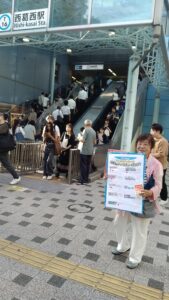 今回の選挙は駅頭でシールアンケートをよびかけ、駅前で対話を続けました。専門学校生は「入学金なし、授業料二分の一、ぜひやってほしい。とにかく授業料が高い」と。働く女性は「日本人ファーストを強調するのは怖い。吉良さんのファンです。しんぶん赤旗を読みたかった」とその場で購読を申し込みました。