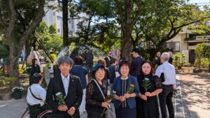 式典のあと、原爆犠牲者慰霊碑に献花をして、事務所に戻りました。