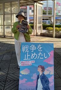 船堀駅では、大橋と原純子前都議が、日本政府の戦争する国づくりと軍事費の大幅増に反対し、核一日も早い兵器禁止条約への署名・批准を訴えました。
