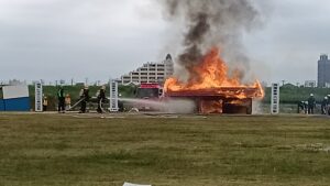 訓練の最後の木造家屋の火災はいつもより大きな家屋だったのではと思うくらい長く燃えていて、見ているだけで怖さが増します。恒例の炊き出し(そうめんとおにぎり)は行いませんでした。