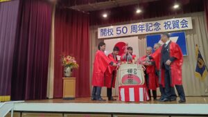 50年前に開校した2校は、続けて周年行事を行いました。10月31日が大杉第二小学校、11月4日が鹿骨東小学校でした。それぞれ、子どもたちの式典への参加、第二部の発表、そして、午後の祝賀会と行われました。子どもたちの発表と地域の方の「学校大好き」があふれる行事となりました。それぞれ、会場(体育館)の広さの都合かもしれませんが、保護者の参加はありませんでした。保護者の方に子どもたちの学校を代表する姿を見てほしかったです。式典の主人公は子どもたちですから。PTAから鼓笛隊のユニフォームベストが子どもたちに記念品として贈られました。2校とも、色とデザインは少し違いますが、相談されたかのようでした。PTAの方の事前の積立金の準備は大変だったのではないでしょうか。