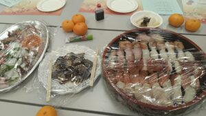 10年以上ご無沙汰していた新年会に参加しました。昨年の旅行に続けての参加。お世話になった方との交流もできて何よりでした。料理は勝俣さんの握りずし、お刺身の盛り合わせ、タイのお刺身、ニシンの煮つけ、卵焼き、サラダ、お新香と手作りの料理が並びます。前日の豊洲で魚を購入し、朝3時からすし飯を作ったといいますから、ほんとにありがたいです。勝俣さんはこれが趣味というので、遠慮なくいただきました。ごちう層さまでした。また、手作りのジャムも販売しており、2個購入しました。開会のあいさつは井原さん。いつも、大橋に声をかけてくださいます。現場の教職員が参加できないため、教職員の働き方の大変さを代わりに報告されました。また、90歳になる岡山さんのお話しも感動的でした。私も、岡山さんの様に頑張っていきたいと思いました。ありがとうございました。