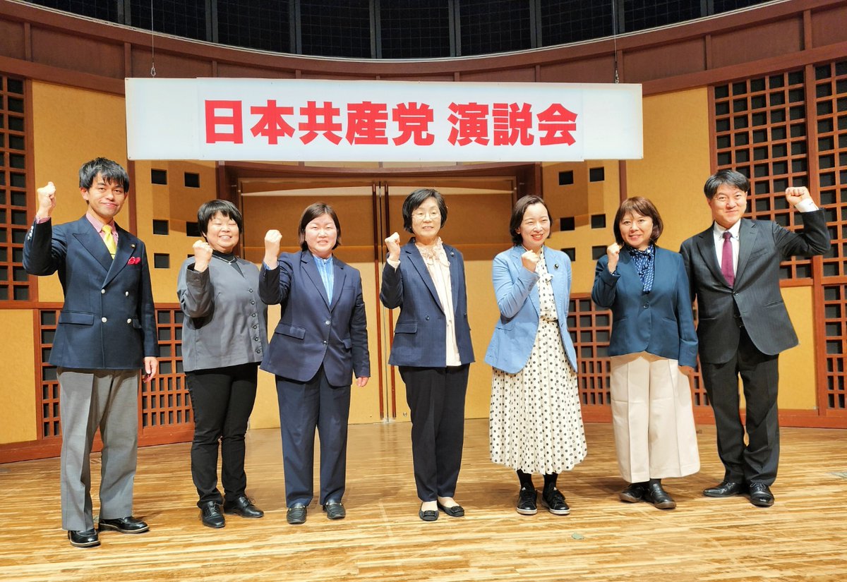 吉良よし子参議院議員や尾崎あや子都議などの演説がありました。