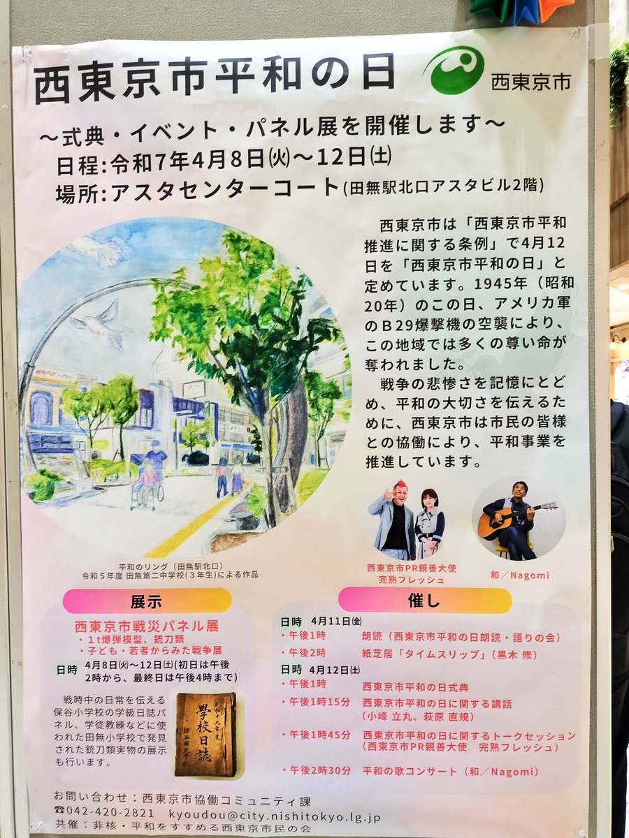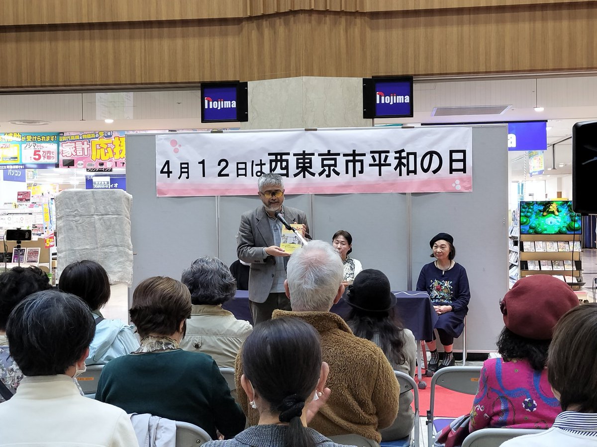 田無のアスタセンターコートでの平和の日のバネル展に市議団3人で参加。