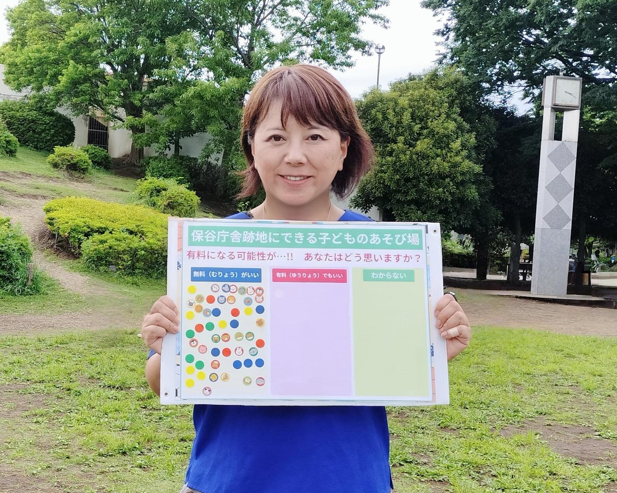 今日も文理台公園や保谷庁舎の原っぱ広場に遊びに来ていた親子連れにシールアンケート。