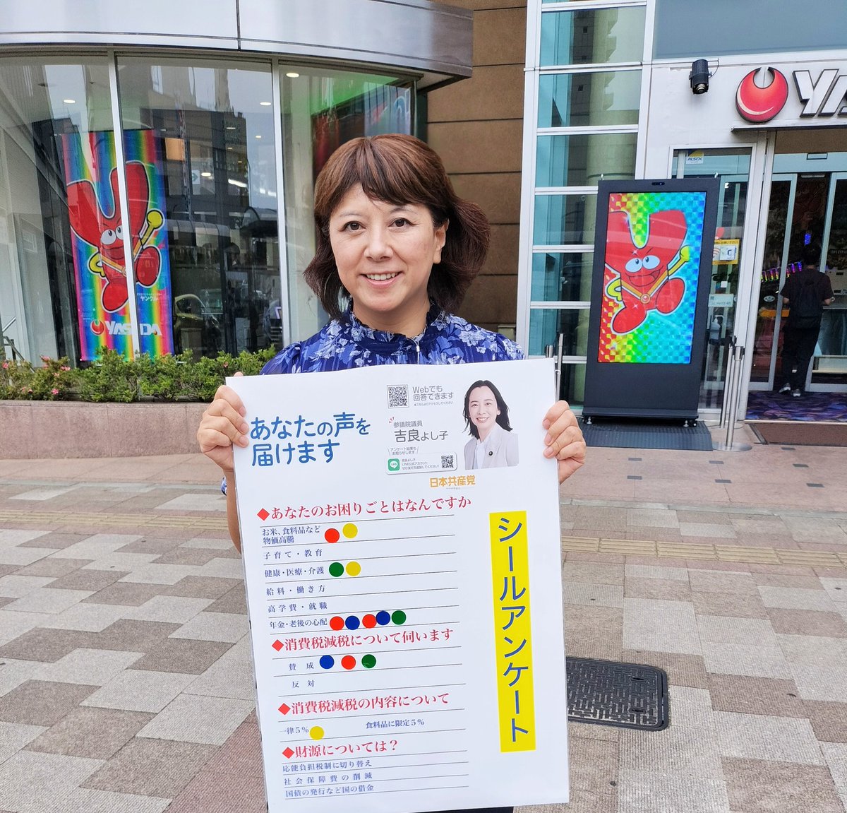 今日はひばりヶ丘駅で消費税のシール投票を行いました。