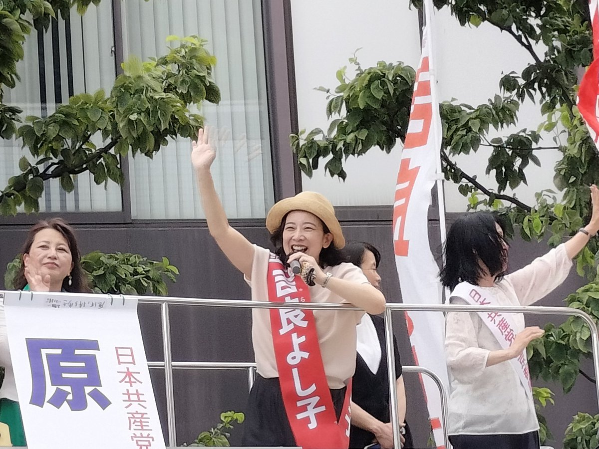 今日の田無駅北口の吉良よし子参議院議員候補の演説。