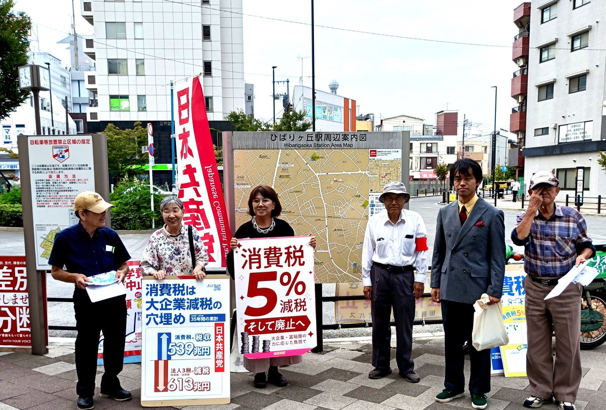 ひばりヶ丘駅北口で消費税減税と廃止を求める宣伝。
