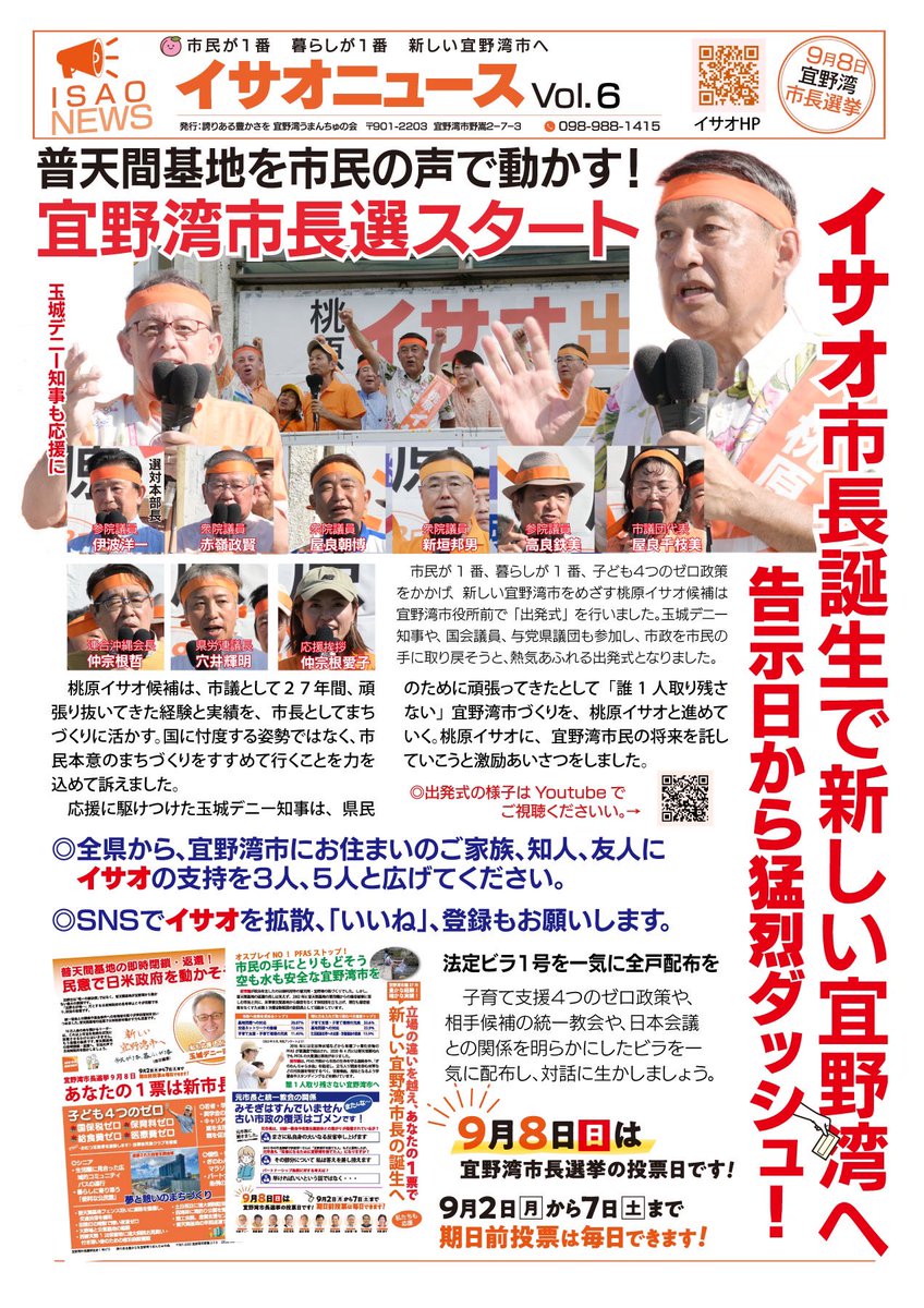 RT @osamu_toguchi: 宜野湾市長選挙、桃原イサオさんの出発式に参加!