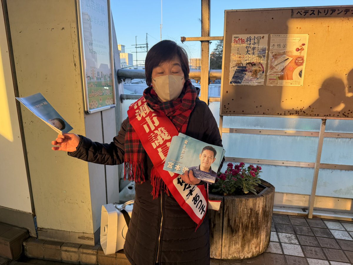 RT @reinakiyosejcp: 清瀬市議団と山崎美和前市議もしっかり宮本徹リーフ配布‼️受けとりは朝にしては良き🌟