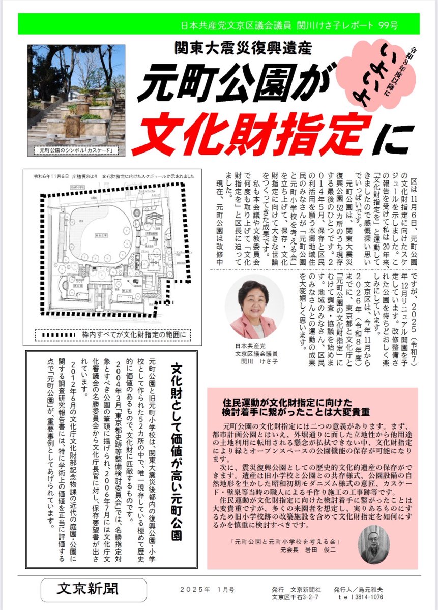 20数年前、行革のやり玉にあがった学校統廃合。この中で総合体育館建て替えの候補地になったのが元町公園。公園をつぶすのではなく保存し文化財として後世に遺してほしいと運動してきました。