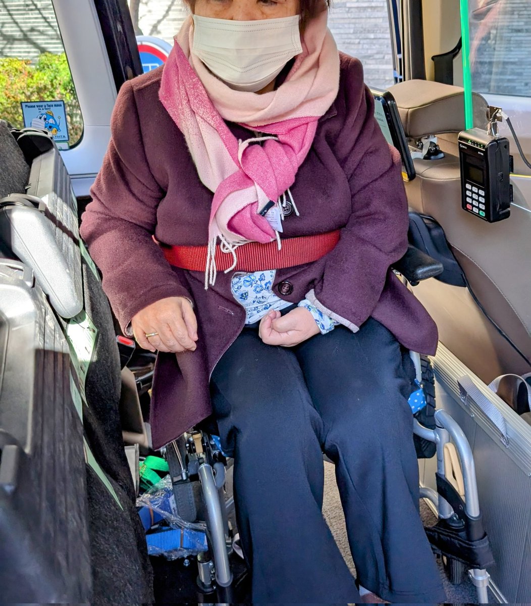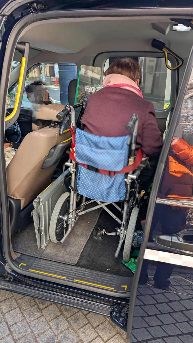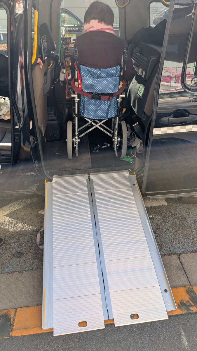 車椅子ごと乗れるので介護タクシーのよう。初めてスロープを使用して乗車できました。