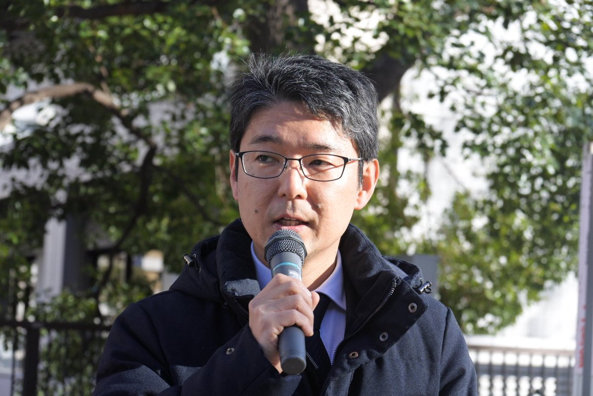 日本でも、大企業の儲けを最優先する社会から人間らしい生活を取り戻す社会へ転換する年にしていきたいと訴えました。